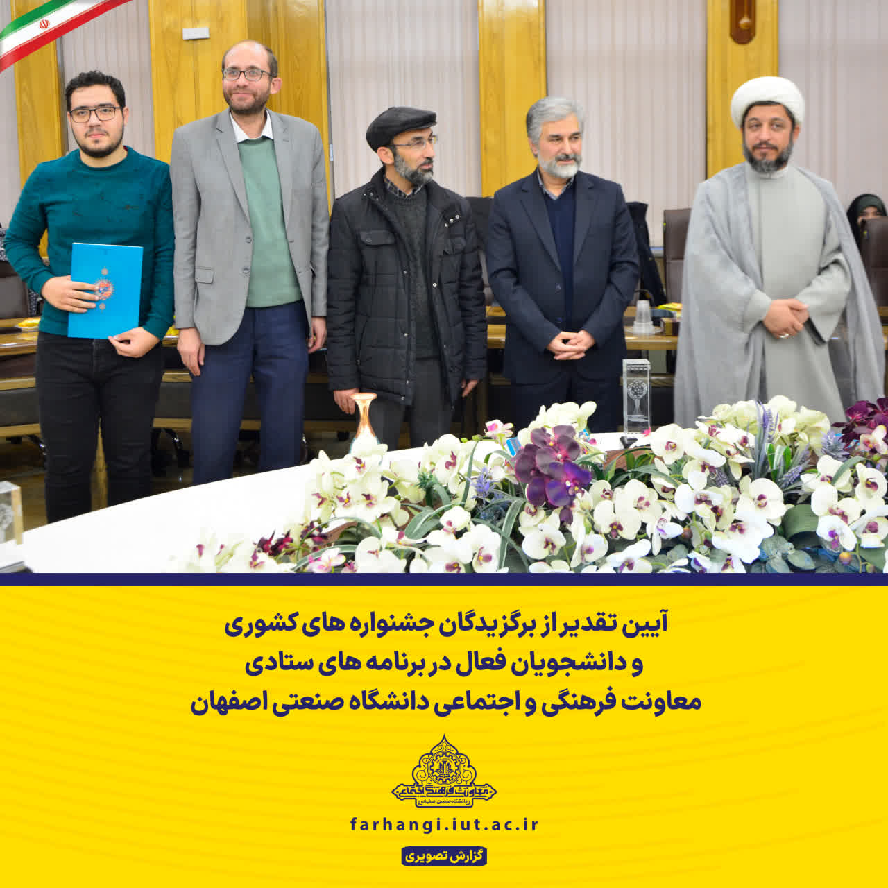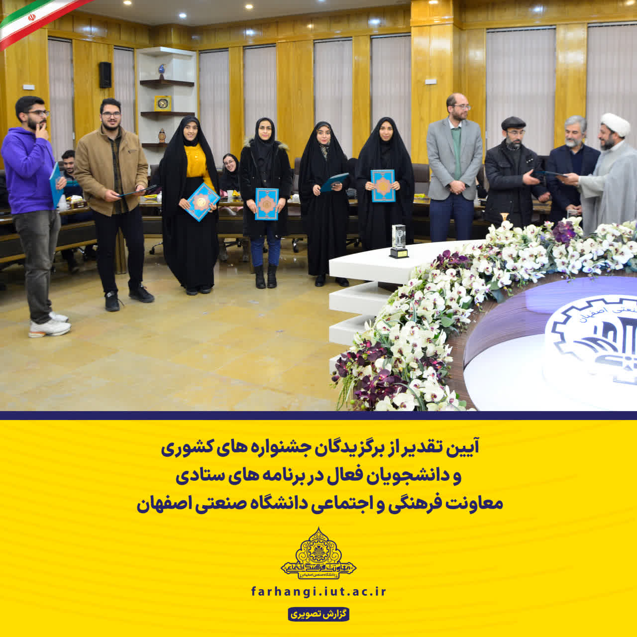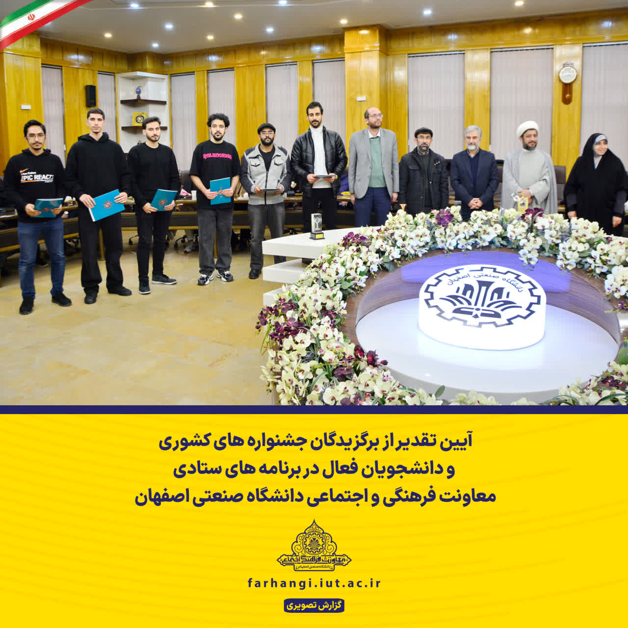 آیین تقدیر از برگزیدگان جشنواره های کشوری و دانشجویان فعال در برنامه های ستادی معاونت فرهنگی و اجتماعی دانشگاه صنعتی اصفهان برگزار شد