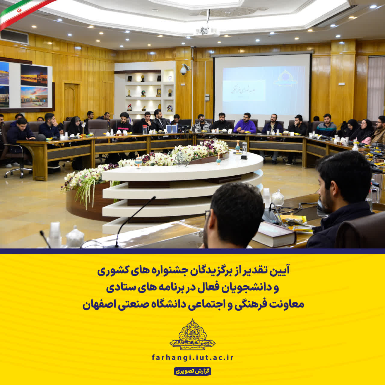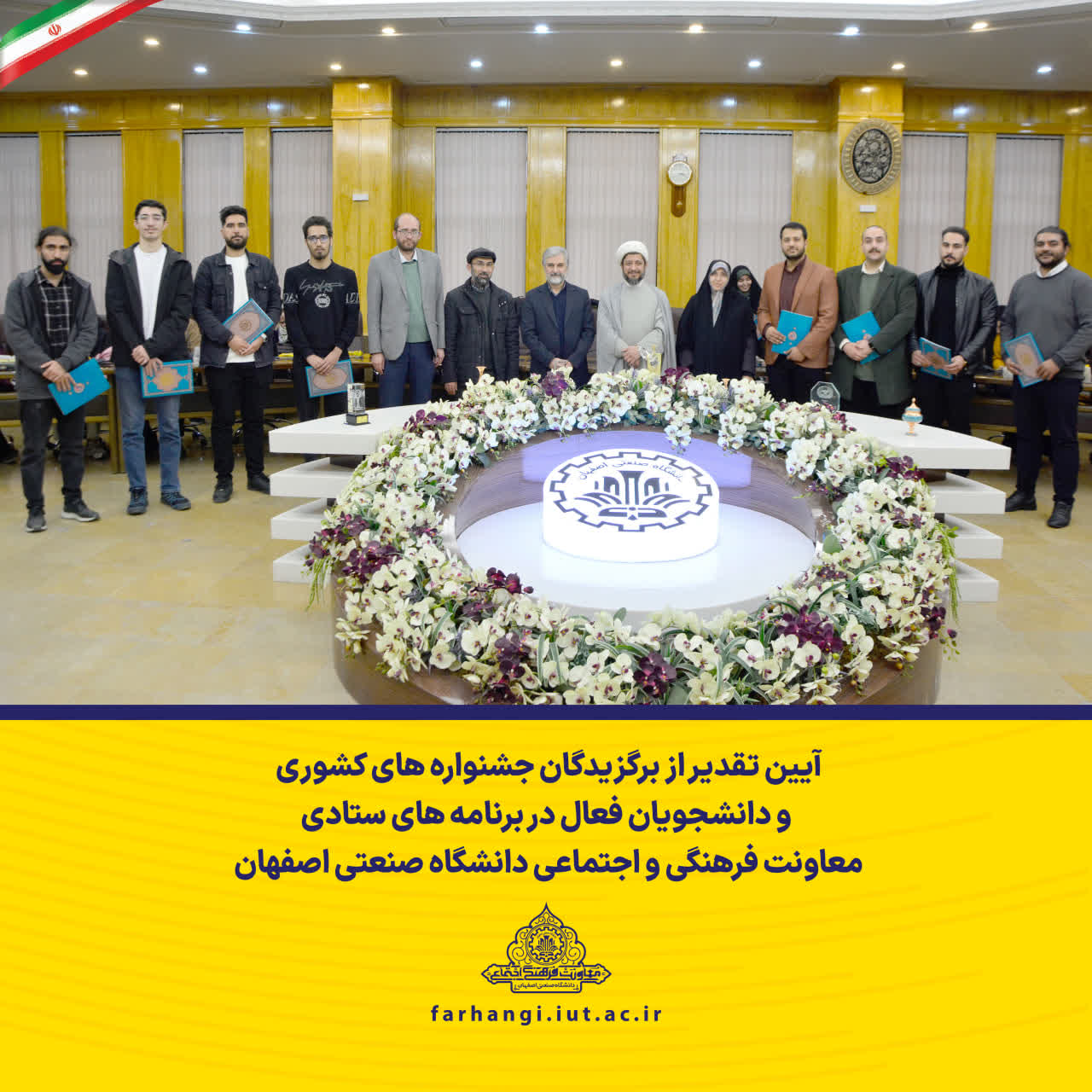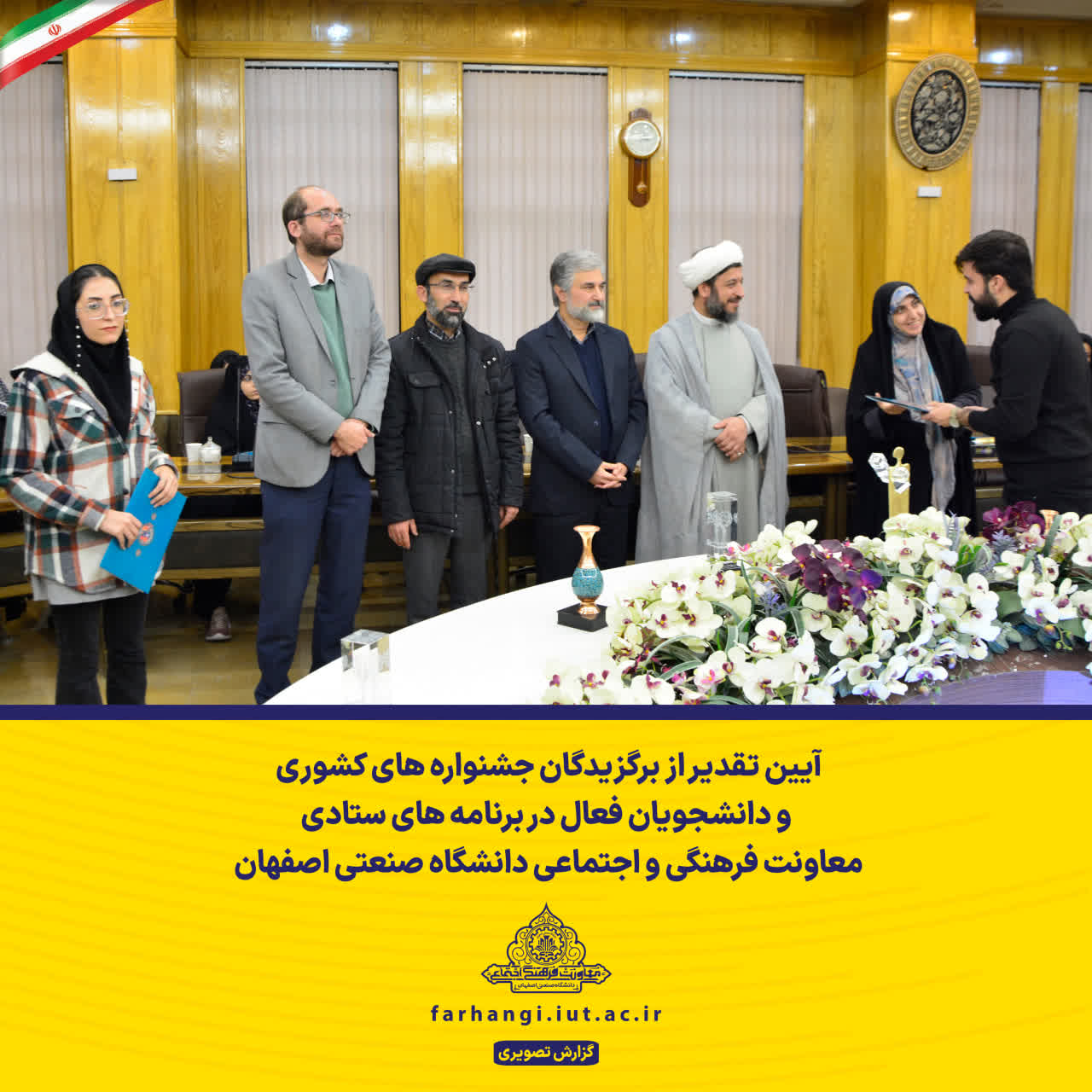 آیین تقدیر از برگزیدگان جشنواره های کشوری و دانشجویان فعال در برنامه های ستادی معاونت فرهنگی و اجتماعی دانشگاه صنعتی اصفهان برگزار شد